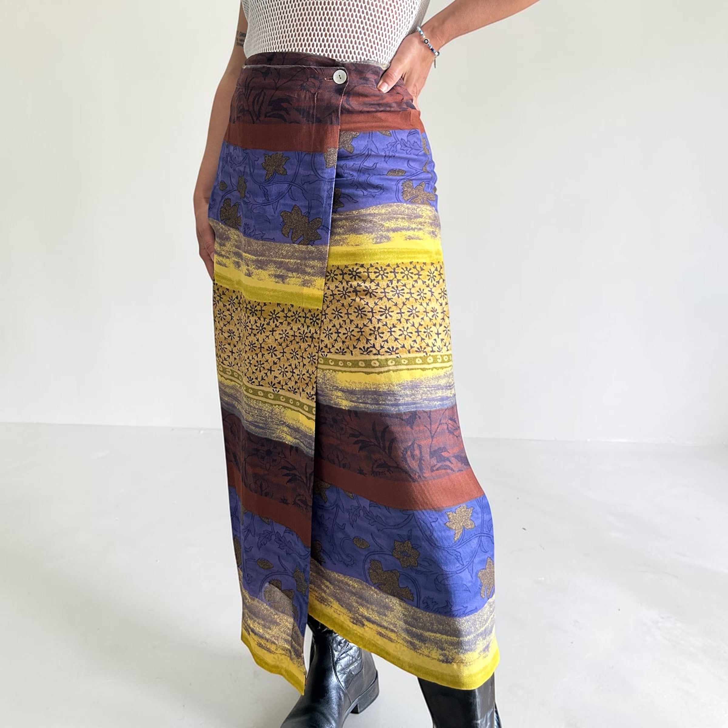 1970s Handmade Vintage Skirt – Printed Brim Cotton with Front Buttons